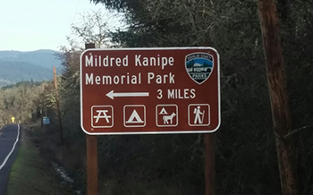 The additional mile or so of trail has been cleared on the 40 acres on the other side of Elkhead Road (and yes, it is part of Mildred's park). New signs to direct people to the trails have been installed by Volunteers from Umpqua Hiking Club. This trail will be for hikers/walkers only. No horses.