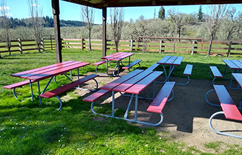 Roseburg OET make-over of Equestrian Pavillon Picnic Tables